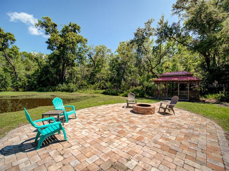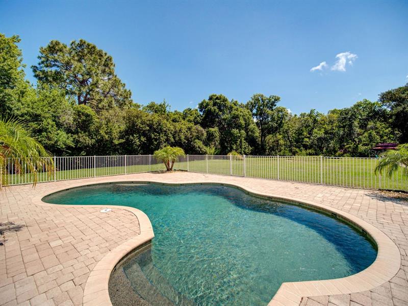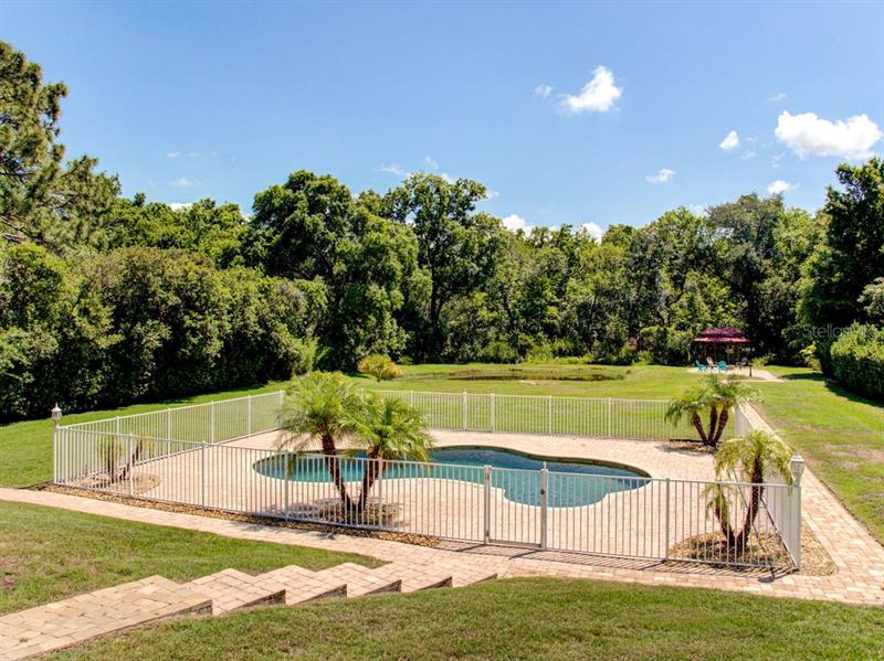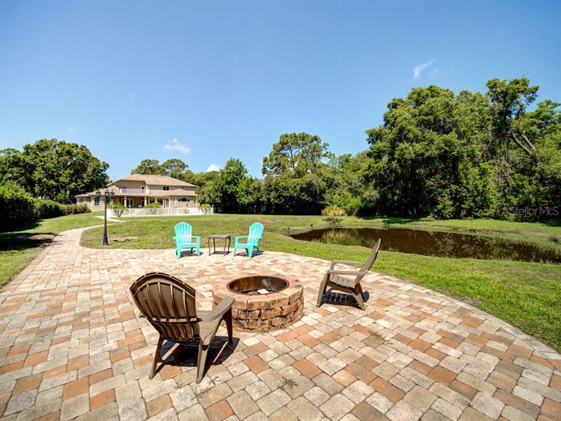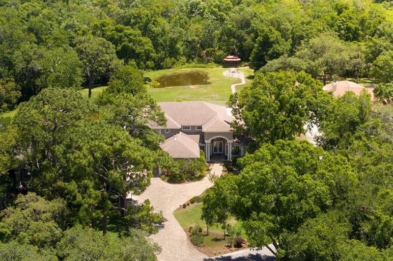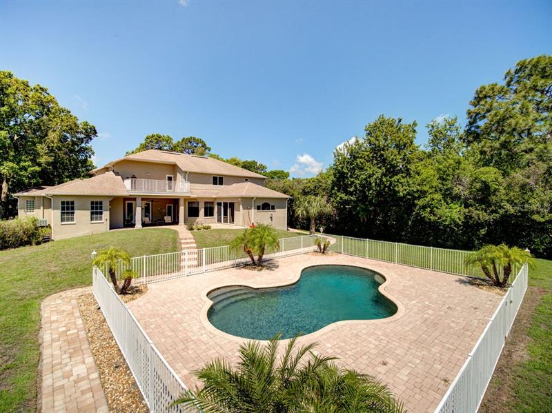 Welcome to “Riverside,” a tree-shaded community of executive, custom homes on Salt Lake! Only 5 minutes from US19 but in a quiet, private oasis, this home offers almost 2 acres of secluded Florida living at its finest. Wildlife including deer and egrets can frequently be seen enjoying the backyard and private pond. This 2-story home features a 1st floor Master Suite AND a 1st floor in-law/guest suite on opposite ends of the home. Master suite with tray ceiling, granite counters, jetted tub with separate shower, separate his/her vanities and large California closet with dressing station. Huge gourmet kitchen with multiple prep areas, island with 2nd sink, breakfast bar, granite counters, and premium stainless appliances including convection oven, warming tray, and a 5 burner Thermador gas range. Large walk-in pantry, separate butler pantry and a wet bar with wine refrigerator. Lots of room for entertaining! Living room with surround sound and gas fireplace. Upstairs you will find a huge loft area perfect for another family space/exercise area/playroom and 3 spacious bedrooms, all with walk-in closets; two share a Jack-and-Jill bath and the third bedroom is an en-suite with balcony. So many extras including vacuum system, water softener, garage rack storage, upstairs laundry chute, Simply Safe security system and more. Enjoy the privacy of almost 2 acres, with a conservation area in the back and a private pond, gazebo, fire pit and pool to spend your leisure time. Conveniently located to shopping, restaurants, Fred Howard Park, Sunset Beach, The Pinellas Trail, world-famous Sponge Docks and top-rated schools!